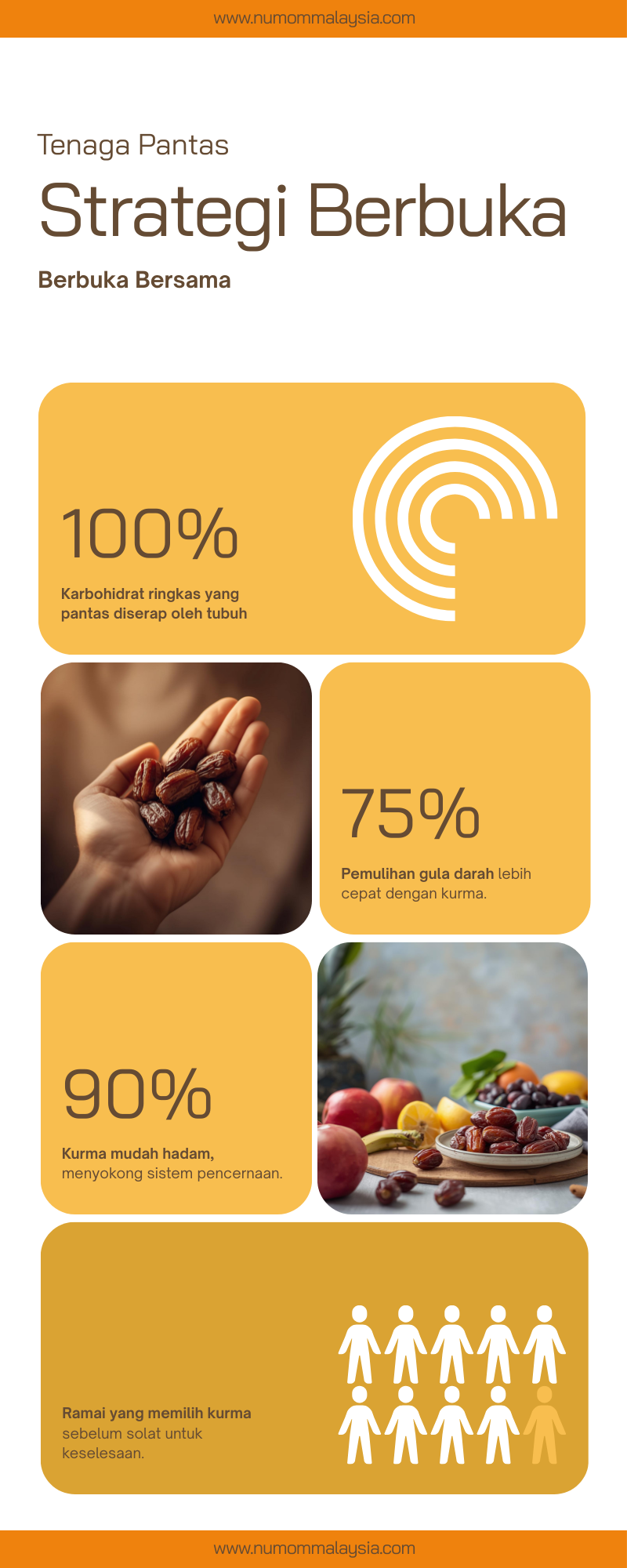 Oleh itu, sebaik-baiknya para ibu mengambil segenggam kurma bersama segelas air kosong (sekitar 250 ml), kemudian menunaikan solat terlebih dahulu sebelum makan makanan berat.