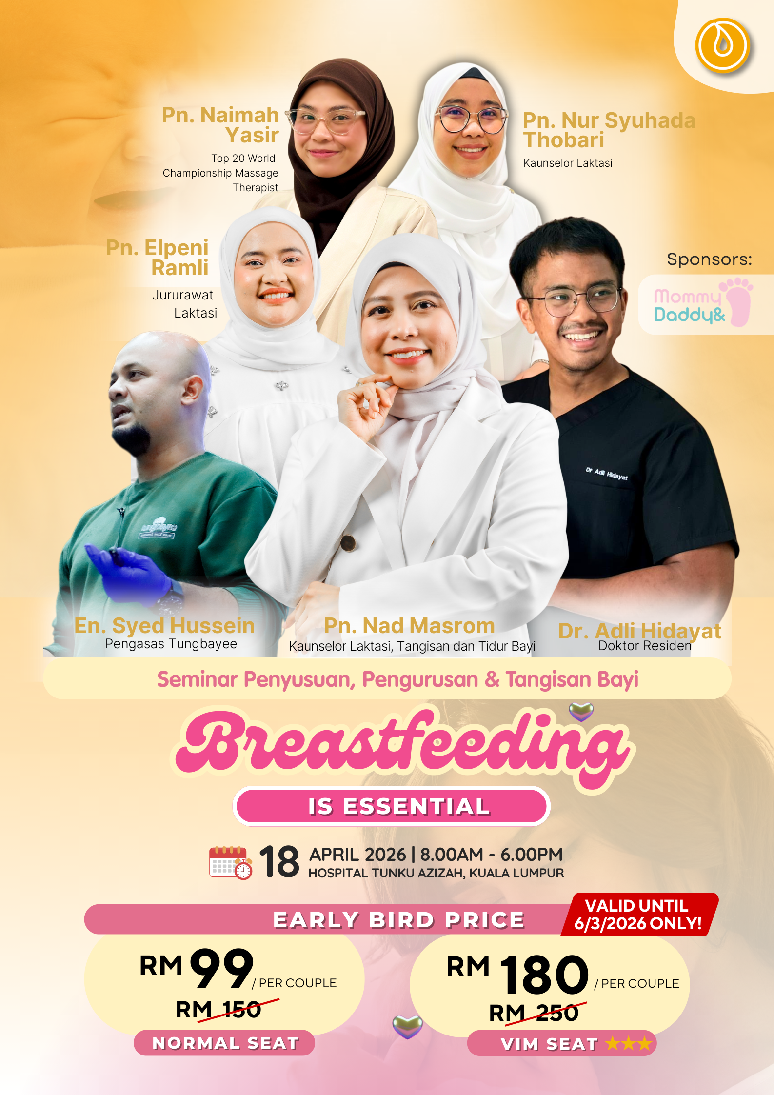 Berita baik buat mommies yang terlepas menyertai Seminar Breastfeeding Is Essential pada Januari lepas. Pada bulan April nanti, seminar akan kembali !